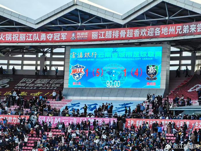 比赛当日,体育场内人山人海,座无虚席。来自丽江和曲靖的球迷将看台染成了两片沸腾的海洋,激昂的呐喊声与助威声此起彼伏,现场气氛火爆异常。这场积分榜上同分球队的直接较量,关乎榜首格局,吸引了全省球迷的目光。