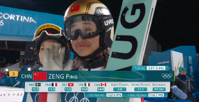 在跳台滑雪女子标准台决赛轮中,曾坪总分237.3,排名第15位,刘奇总分217.4,排名第26位,挪威选手斯特罗姆获得金牌,斯洛文尼亚选手普雷夫奇获得银牌,日本选手丸山望获得铜牌。