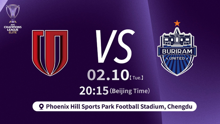 北京时间2月10日晚(今晚)20时15分,2025-2026赛季亚冠精英联赛联赛阶段东亚区第7轮的一场焦点对决在凤凰山体育公园专业足球场上演,中超新川足成都蓉城坐镇主场,迎战泰国超级联赛劲旅武里南联。