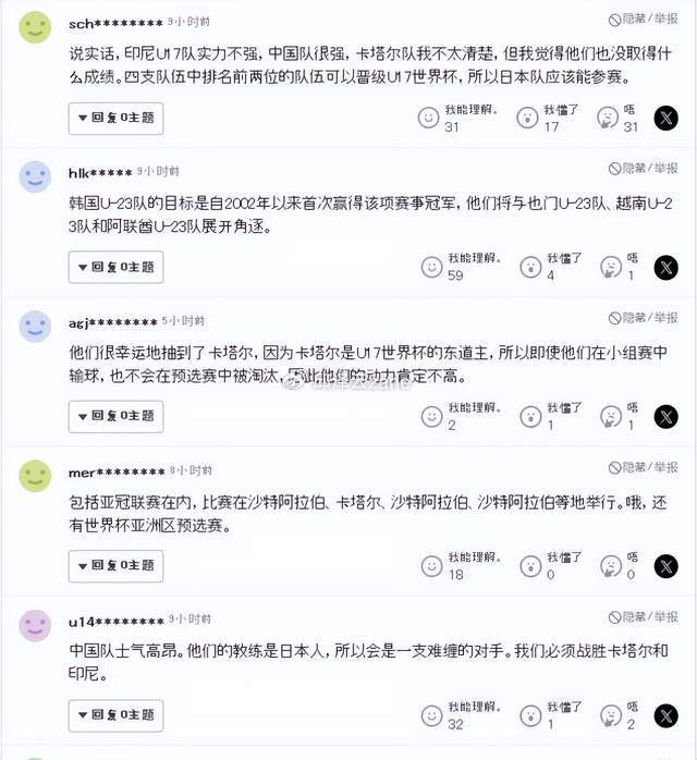 日本媒体也报道了这次抽签,提到了印尼上下认为这个抽签结果对他们很不利,形势严峻。对此,日本球迷也认为,印尼是这个小组最弱的球队,而中国U17是最难缠的对手,所以日本U17必须战胜印尼和卡塔尔这2个对手,出线才稳当。