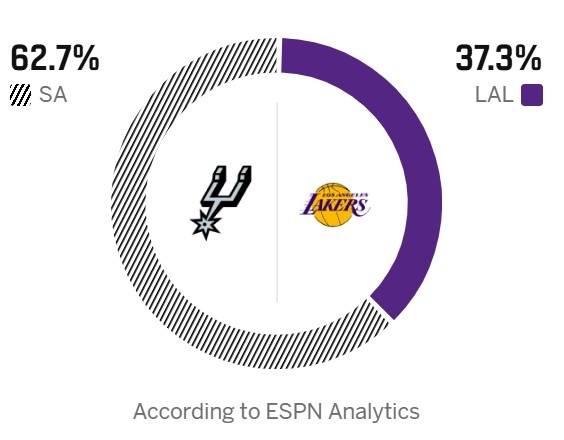 目前,湖人32胜20负西部第五,马刺36胜16负西部第二。