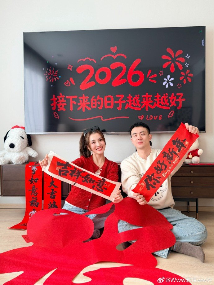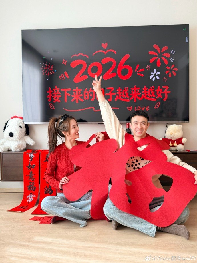 赵继伟妻子晒合照:马年大吉 我们给大家拜年啦