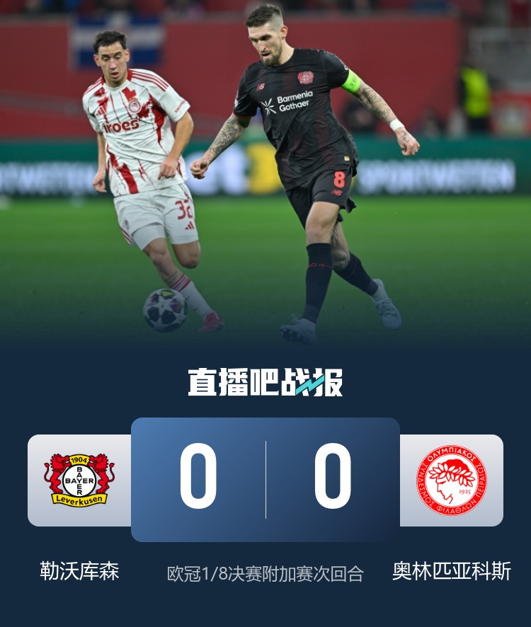 勒沃库森在主场0-0战平奥林匹亚科斯,以总比分2-0淘汰对手晋级欧冠十六强,他们在淘汰赛的对手将是拜仁慕尼黑或者阿森纳。